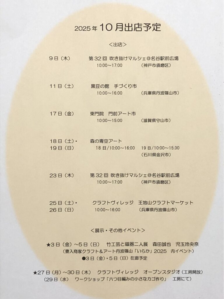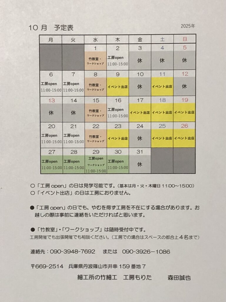 工房もりた 10月の予定